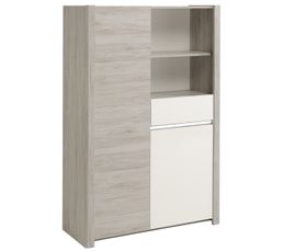 Buffet Haut 2 Portes 1 Tiroir Camille Chene Blanchi Gris Buffets But